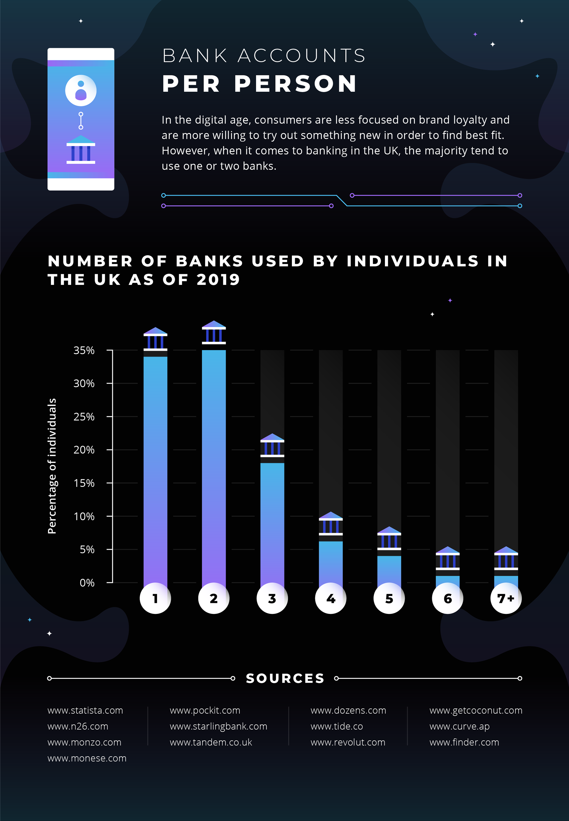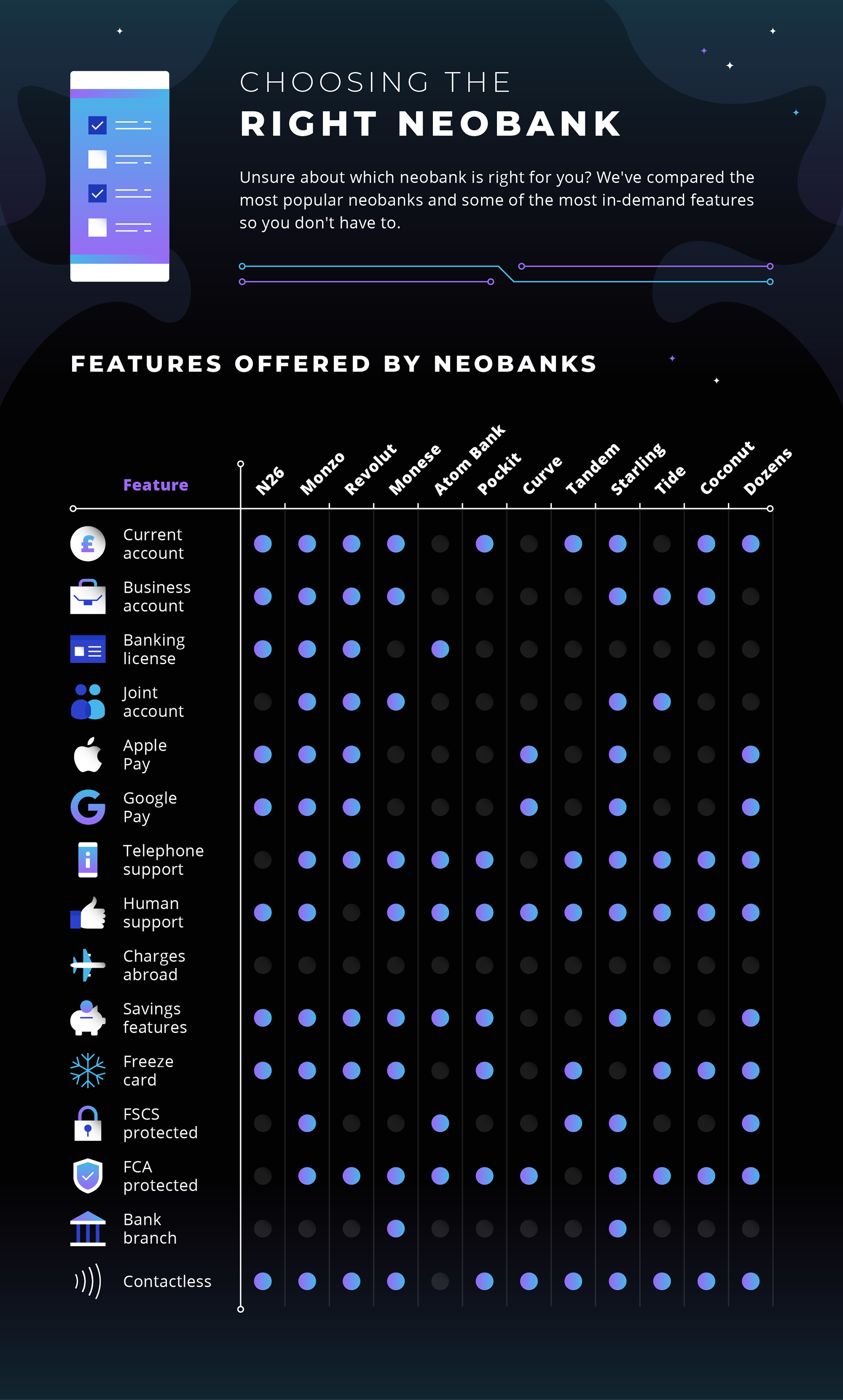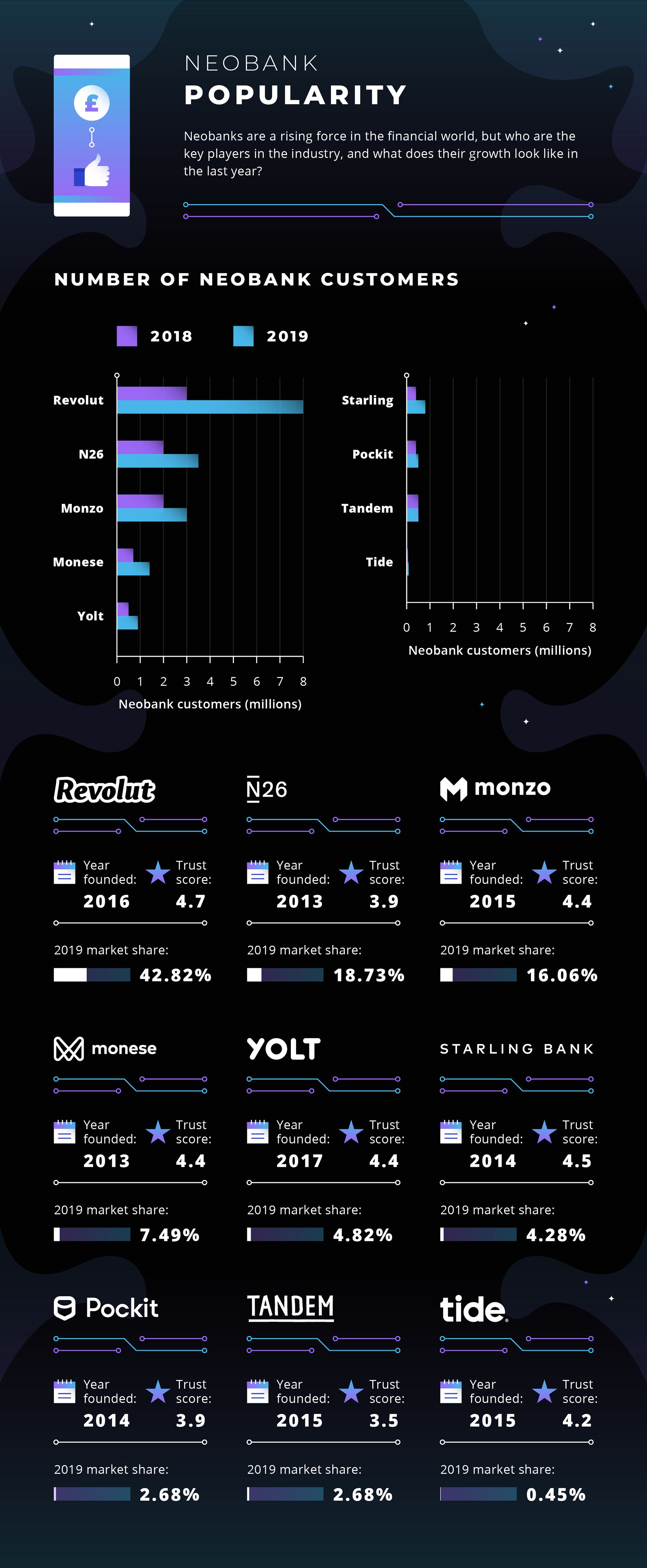 Infographic 'panels' designed for Kaizen which examine the rise of neobanks and how their popularity is signalling huge