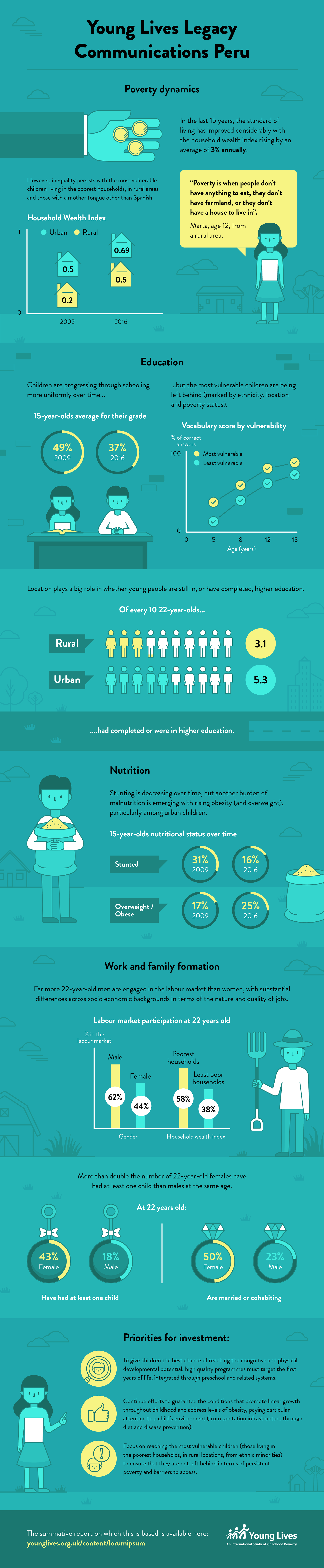 A series of infographics designed for Young Lives which outline the economic and social conditions currently experienced by young people in Peru and Vietnam.